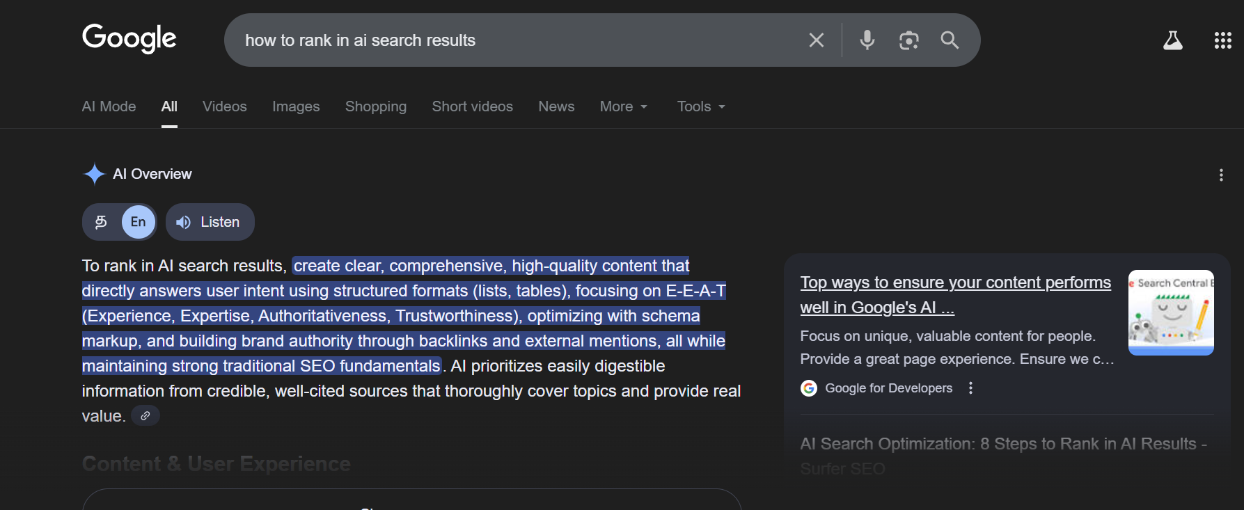 When creating good content for an AI search:
